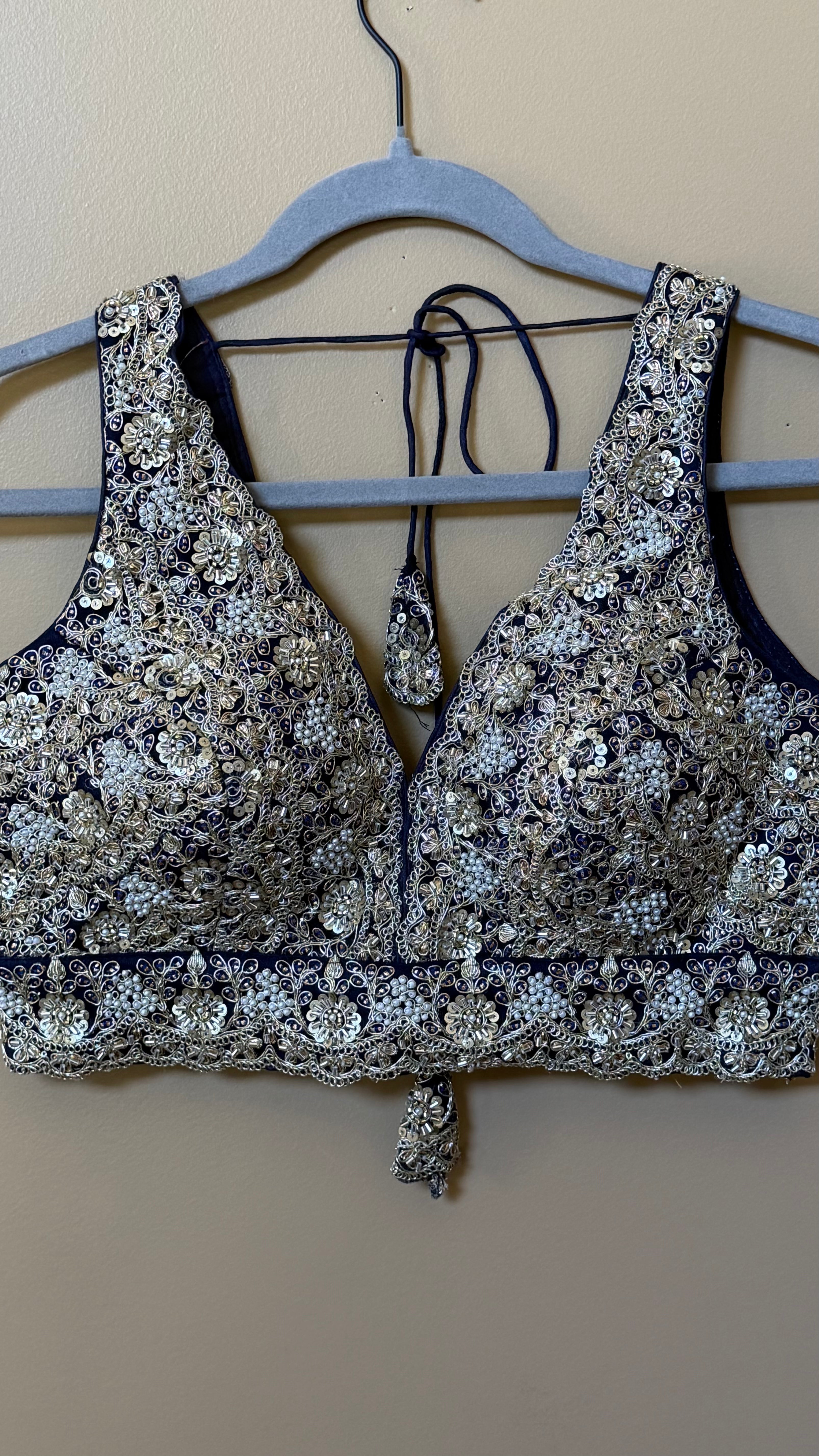 Elevate your ethnic wardrobe with this exquisite designer blouse, meticulously crafted with intricate moti and sequin embellishments. Each piece features hand-applied embroidery that catches the light beautifully, creating a luminous, eye-catching effect perfect for weddings, celebrations, and special occasions. The sophisticated detailing showcases traditional craftsmanship combined with contemporary design sensibilities. Versatile enough to pair with sarees, lehengas, or skirts, this blouse promises to be a standout addition to your collection. A timeless investment in elegance and artisanal quality.