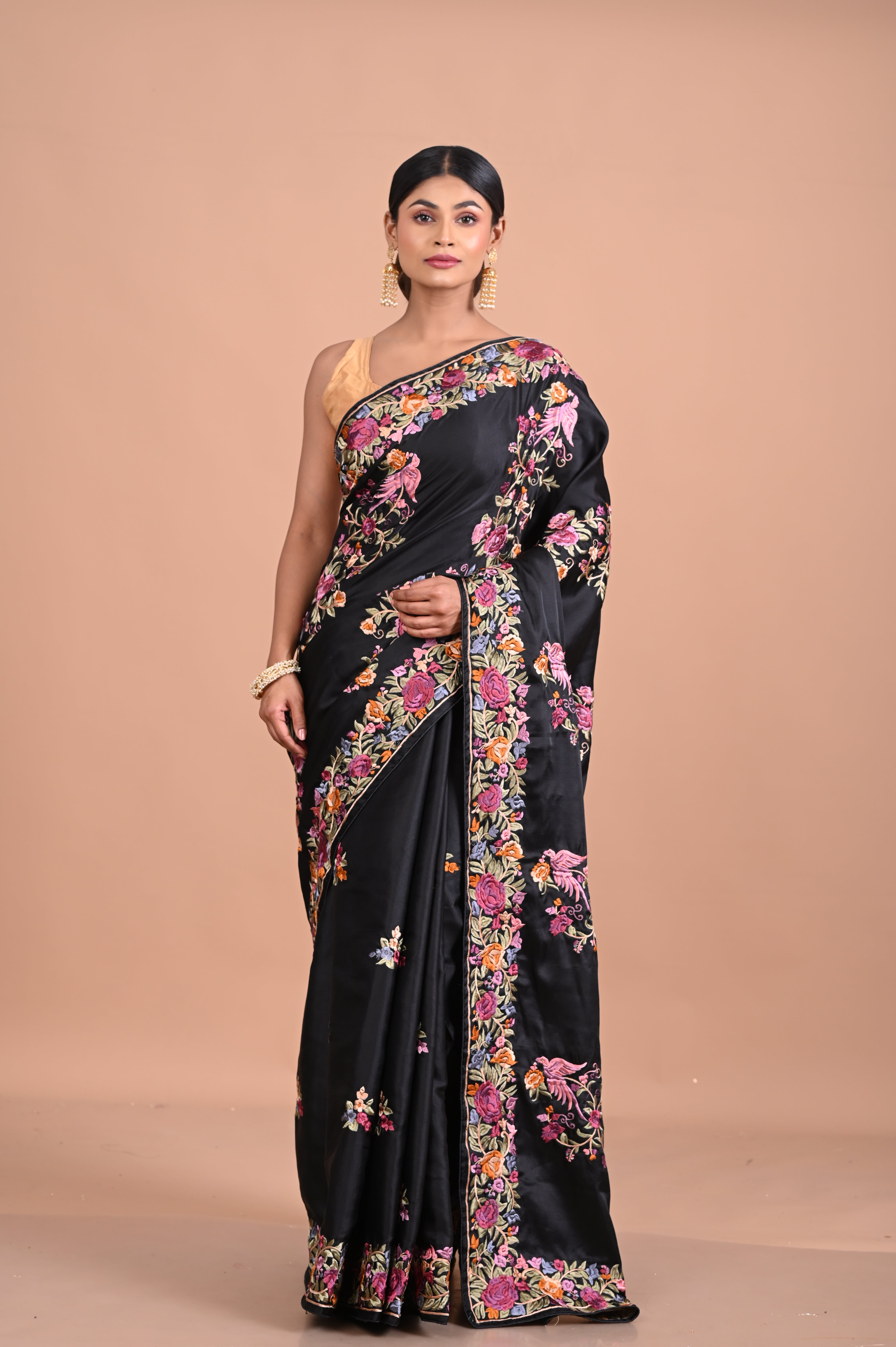 This luxurious Tusser fabric features a stunning Parsi work jaal design. Handcrafted with precision and intricate details, this fabric is the epitome of elegance and sophistication. Perfect for creating exquisite garments that will make a statement in any fashion forward wardrobe.